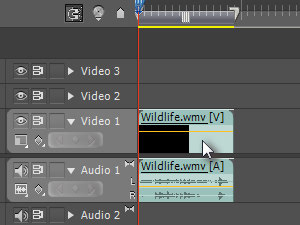 ... in ga povlecite v časovni trak pod Video 1 (glej sliko).