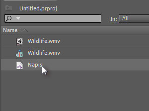 V oknu z vsemi projektnimi datotekami z miško primite ustvarjen napis ...