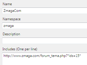 V polja vnesemo podatke, kot sem jih jaz. Prva dva lahko tudi poljubno izberete, pomembno je, da v okno Includes vpišete