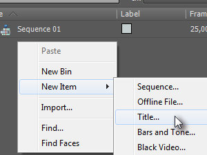 Potem pa v polje z projektnimi dokumenti kliknite z desnim miškinim gumbom, izberite New Item in Title...