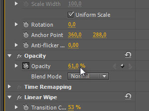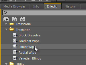 Odprite okno Effects, Video Effects, Transition, z miško primite Linear Wipe ... |