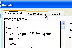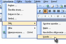 ![]() Kliknite na Vstavljanje, Sklic in izberite Kazala ... |