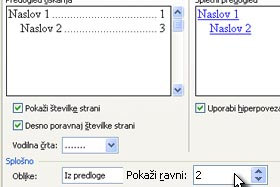 ![]() V polje Pokaži ravni določite 2 in potrdite na gumb V redu. |