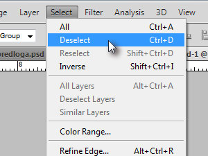 Kliknite zgoraj na Select in izberite Deselect. S tem ukazom smo pobrisali selekcijo. |