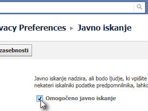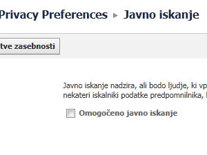 Sedaj pa onemogočite možnost Omogočeno javno iskanje tako, da kliknete na označeno kljukico.