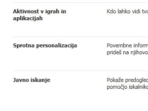 Odpre se vam okno z nastavitvami z zasebnost.