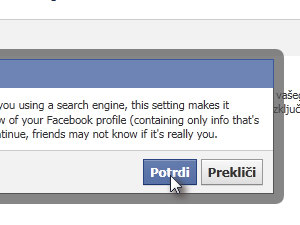 Po eni strani je dobro, da vas ljudje najdejo preko iskalnikov, po drugi pa lahko za to uporabijo tudi sam Facebook. Če se strinjate, potrdite na gumb Potrdi. Opazili boste še en kratek odstavek, ki ni poslovenjen. Pa saj je številka 660.000 res mala, tako da jim ni kaj očitati ne? |