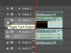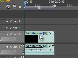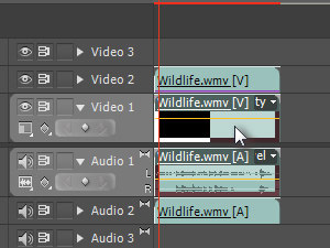 ![]() Vklopite nazaj pogled (ikona z očesom) in označite video posnetek na traku Video 1. |