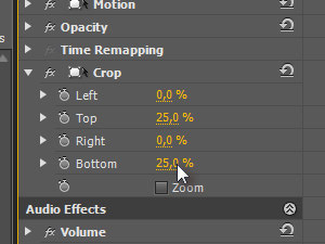 ![]() Odprite nato možnost Crop ter nastavite Top in Bottom na 25% (glej sliko). |