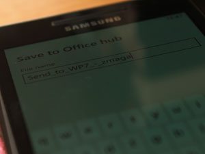 V primeru da shranjujete dokument, vam telefon pred shranitvijo v Office hub, ponudi, da le-tega po želji še preimenujete.