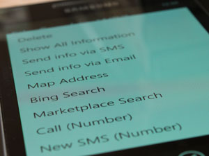 Če se vrnete v aplikacijo Send to WP7 na seznam poslanih datotek in povezav, vam aplikacija ponuja kar nekaj možnosti upravljanja z njimi. Izberite neko povezavo ali datoteko in pridržite prst na njej, da se odpre kontekstni meni.