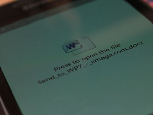 Zune Software omogoča dodajanje glasbe, slik in videoposnetkov na WP7, ne pa tudi dokumentov (.docx, .xlsx in .pptx). Če si dokumentov ne želite pošiljati sami sebi in že težko čakate na funkcionalnost v Mangu, ki bo prinesla integracijo oblaka SkyDrive (kamor lahko nalagate dokumente) v Office hub, zna biti ta aplikacija v navezi s programom na računalniku oz. razširitvijo v brskalniku, uporabna za vas. Seveda podobne aplikacije obstajajo tudi za pametne telefone z drugim operacijskim sistemom.