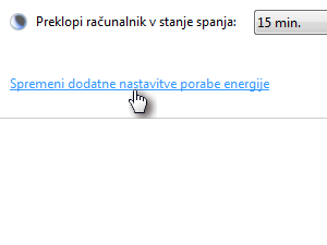 Kliknite na Spremeni dodatne nastavitve porabe energije.