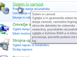 Če imate razdeljeno glede na Zvrst, morate najprej klikniti na Sistem in varnost in nadaljujte z naslednjim korakom.
