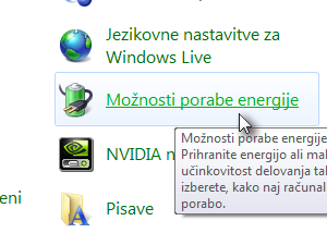 Kliknete na Možnost porabe energije in skočite na sedmi korak. |