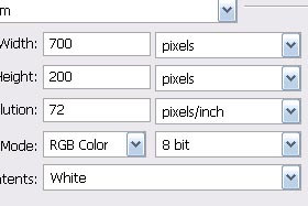 Odprite nov dokument in mu določite Width 700 in height 200 pik.
