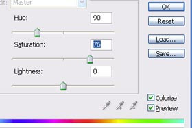 Prvo označite Colorize. Potem pa določajte poljubne vrednosti z drsniki. Jaz sem določil Hue 90 in Saturation 76. Lightness sem pustil 0 ter potrdil na gumb OK. |