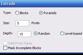 Jaz sem določil Type Pyramids, Size 5 pik, Depth 15 in označil Random. Spremembe potrdimo na gumb OK. |