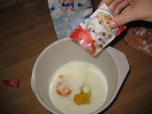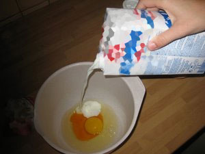 Po potrebi dodajte še mleko, če je zmes pregosta in se težko meša.