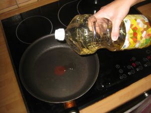 Potem nastavite najvišjo temperaturo in dodajte nekaj kapljic olja.