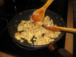To vztrajno počnite ves čas pečenja, dokler ne se vsa masa ne razdeli na koščke, ki jih nato pražite dokler ne porjavijo.