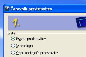 Odpre se čarovnik. Izberite Prazna predstavitev in potrdite na gumb Naprej.