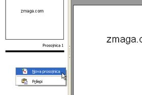 Kliknite z desnim miškinim gumbom pod prvo prosojnico na desni strani in izberite Nova prosojnica.
