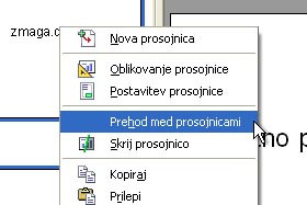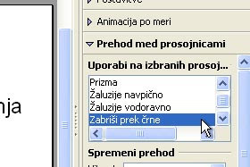Kliknite na eno prosojnico z desnim miškinim gumbom in izberite Prehod med prosojnicami.