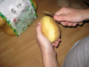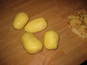 Pripravite štiri ali pet kosov krompirja. Olupljen krompir umijte pod vodo. |