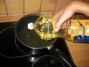 Sedaj pripravite ponev in jo postavite na kuhalno ploščo z nastavljeno najvišjo temperaturo. V ponev nalijte toliko olja, da se bo lahko v njem pekel krompirček. |