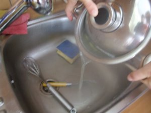 Če je krompir mehak, vzemite posodo in na jo prekrijte s pokrovko. Odlijte vodo in s pomočjo pokrovke preprečite krompirju, da se odlije skupaj z vodo. |
