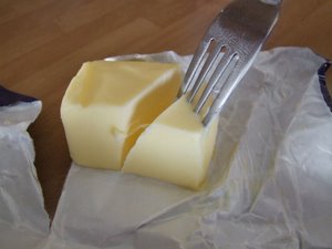 Vzemite maslo in ga odrežite za dve veliki žlici. |