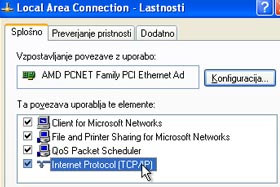 Izberite Internet Protocol (TCP/IP) in kliknite na gumb Lastnosti. |