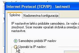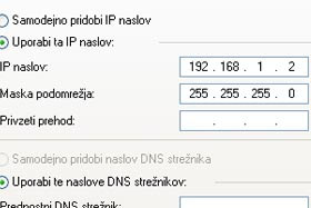 Vpišite v IP naslov 192.168.1.2, v Masko podmrežja pa 255.255.255.0.