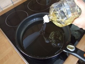 Pripravite ponev in vanjo dodajte za 1.5 cm globine olja. |
