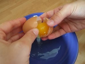 Vzemite jajce in ga delno razbite na robu krožnika. |