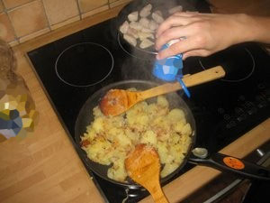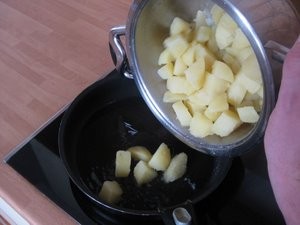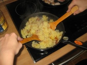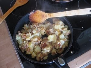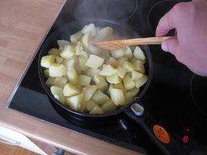 Vmes večkrat premešamo, da se krompir z vseh strani lepo zapeče. |