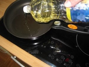 Pristavimo ponev in vanjo vlijemo nekaj žlic olja. |