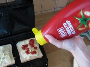Dodajte sedaj še nekaj ketchupa, vendar ne pretiravajte.