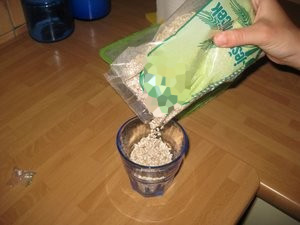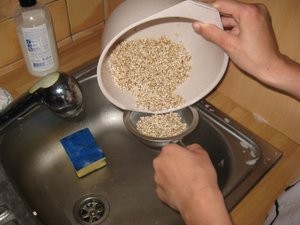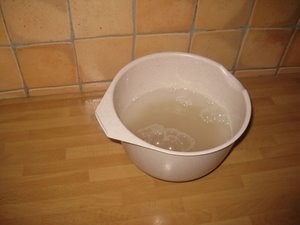 Stresite ga v večjo plastično posodo, v katero nato vlijete vodo. |