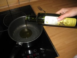 Pristavite posodo in vanjo vlijete nekaj žlic olivnega olja. |