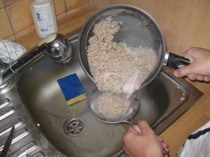 Ko je kuhan, ješpren odcedite. Ko je v cedilu, ga lahko splaknete z toplo vodo. |