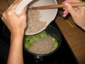 Nato v isto posodo dodajte prej kuhan ješprenj. |