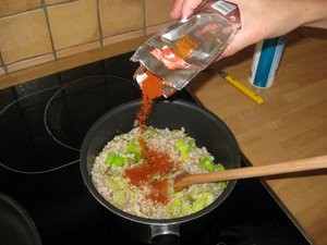 Dodajte nekaj žlic mlete rdeče paprike. |