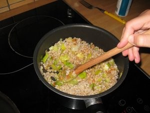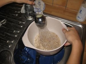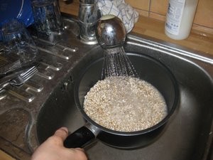 In začnite kuhati na srednjem ognju približno eno uro. Vmes lahko z vilico vzamete nekaj zrn ter jih probate, da preverite, če so že kuhani. |
