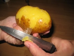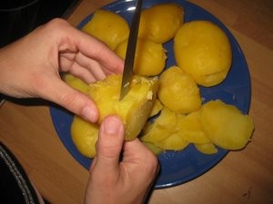 Nato krompir enostavno olupite z navadnim jedilnim nožem. |