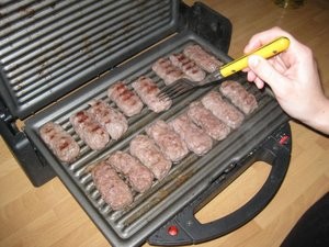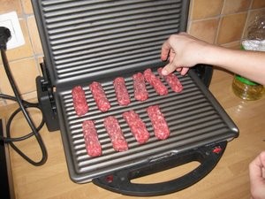 Ko je plošča dobro segreta zložite nanjo čevapčiče.