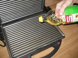Vzemite papirnato brisačko in olje enakomerno porazdelite po vsej površini opekača.