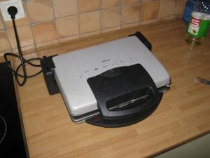 Priklopite opekač na najvišjo jakost, da se dobro segreje.