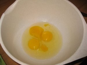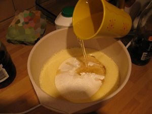 V skodelico odmerite še olje, ki ga tudi dodate jajcem. |